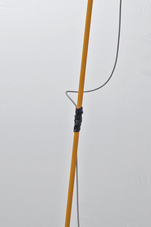 powder coated aluminum, iron fittings, rubber crutch tips, neoprene, Elfa aluminum rack, Plastidip, glass, video on Samsung monitor, extension cable